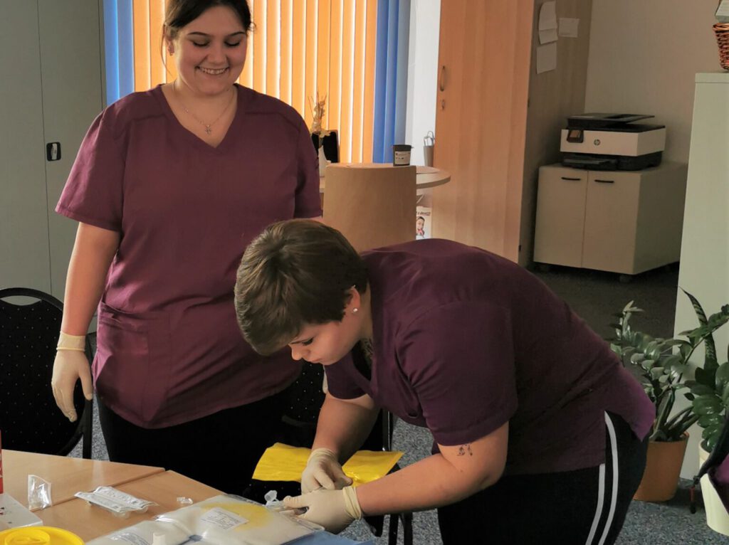 Dabei wurde nicht nur die Theorie besprochen, sondern sie durften sich, unter den wachsamen Augen der Praxisanleitung, selbst ausprobieren.